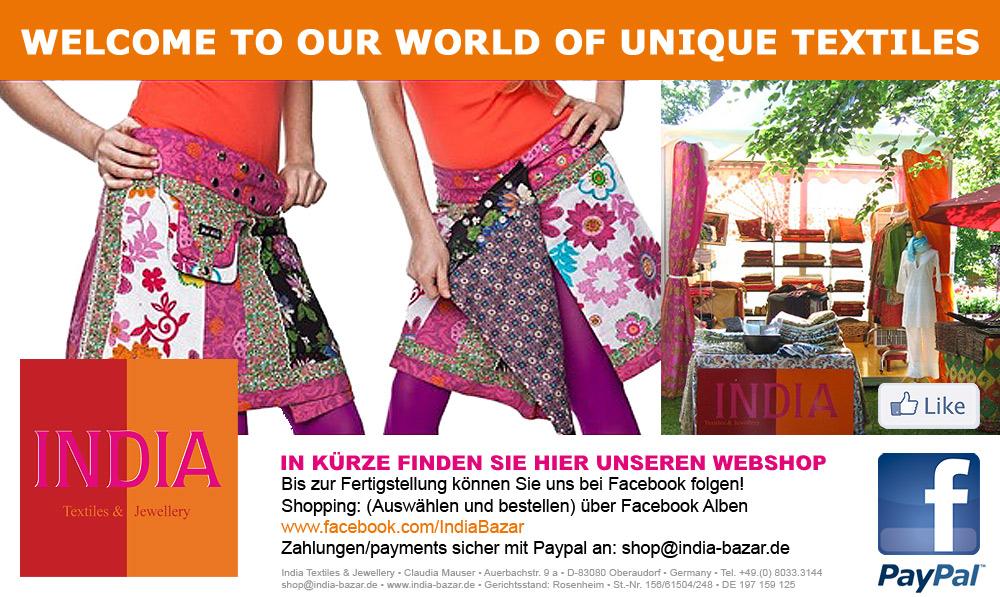 Zur FACEBOOK-Seite von INDIA Zur FACEBOOK-Seite von INDIA E-Mail schreiben an INDIA Zur Internetseite von PayPal Zur Internetseite von PayPal